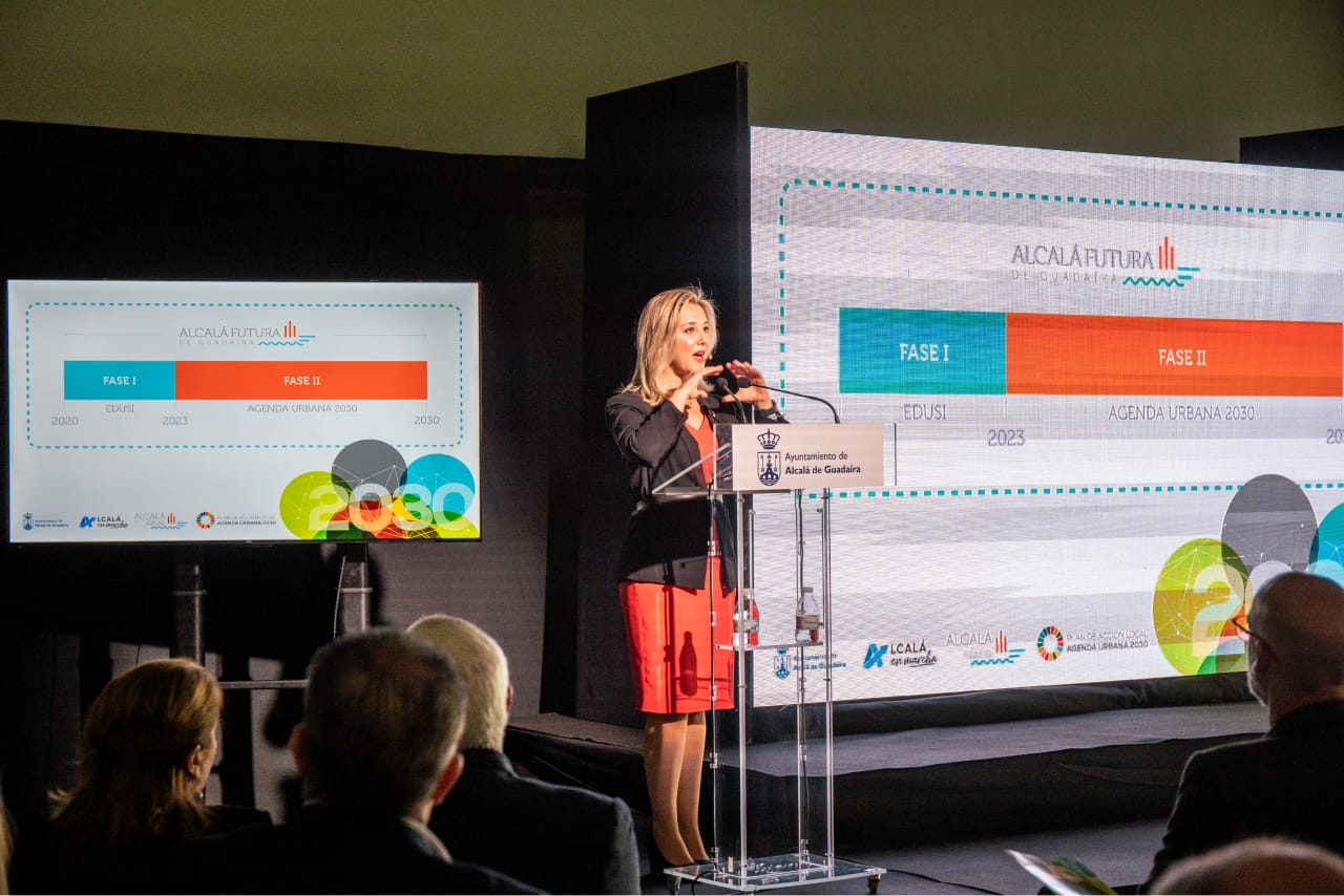 La alcaldesa de Alcalá de Guadaíra, Ana Isabel Jiménez, ha presentado la segunda fase de Alcalá Futura- Plan de Acción Agenda Urbana 2030, la planificación del diseño de ciudad basado en el trabajo realizado en los últimos años que continúa la Estrategia de Desarrollo Urbano Sostenible e integra nueve grandes proyectos para la ciudad en materia de urbanismo, infraestructuras, servicios, deporte, cultura y convivencia alineados con las estrategias Europea, Nacional y regional Agenda 2030.