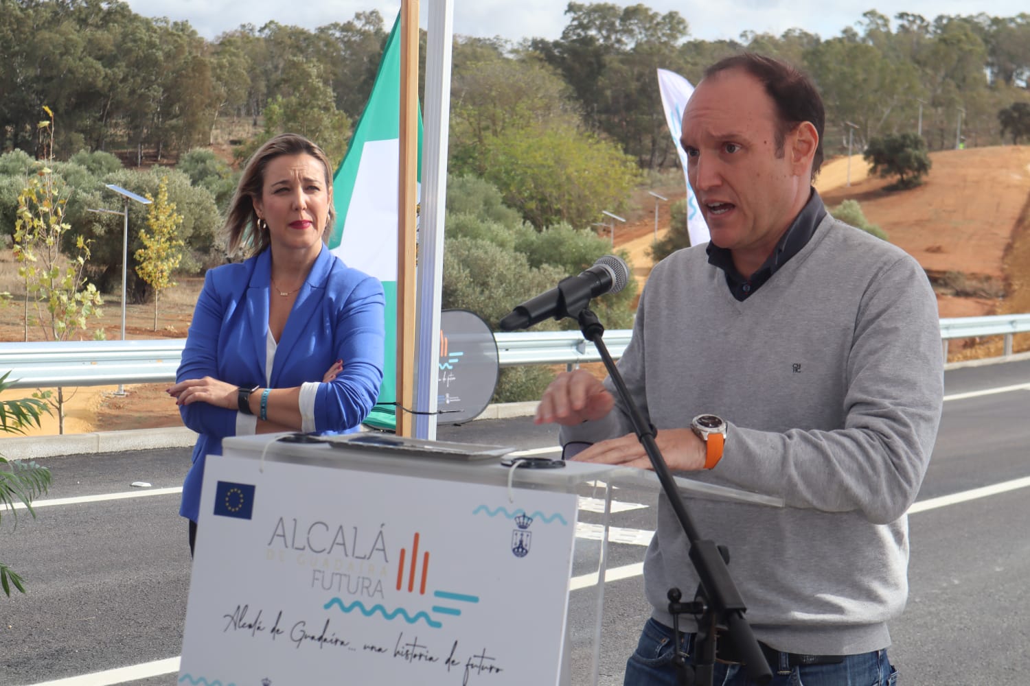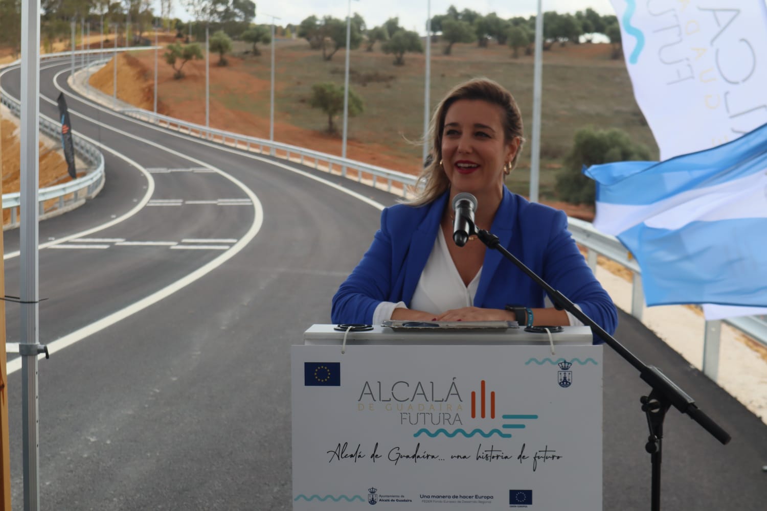 La alcaldesa de Alcalá de Guadaíra, Ana Isabel Jiménez, ha inaugurado este martes el Vial Intermedio, “carretera que va a transformar la circulación entre las zonas norte y sur de la ciudad y por ello está considerada una infraestructura muy importante dentro del Plan de Movilidad Urbana Sostenible”. Este vial enlaza la A-392, desde la rotonda del vivero, con la carretera (A8033), que llega al Puente del Dragón (vial del Zacatín), y posibilita una comunicación rodada más rápida y cómoda constituyendo un alternativa importante para evitar la zona centro.