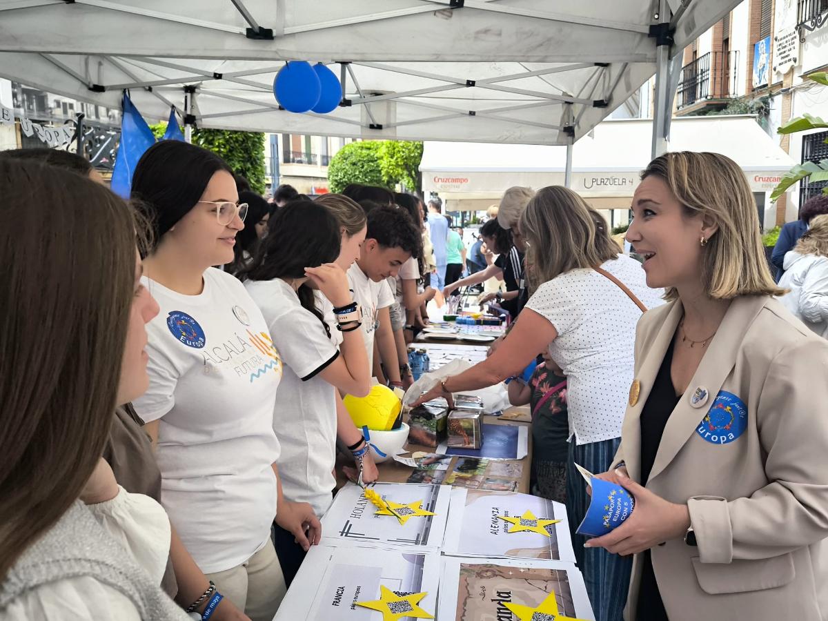 Ana Isabel Jiménez ha explicado que “en este 75 aniversario de la andadura de la Unión Europea debemos conocer que ésta ha sido una pieza clave en el desarrollo de Alcalá y en el proceso de transformación en el que estamos inmersos gracias a los fondos europeos. En los últimos 10 años hemos recibido 42 millones de euros de fondos europeos que el Ayuntamiento ha completado hasta llegar a los 65 millones de euros y que nos han permitido cambiar nuestra ciudad, mejorar infraestructuras y la movilidad”.