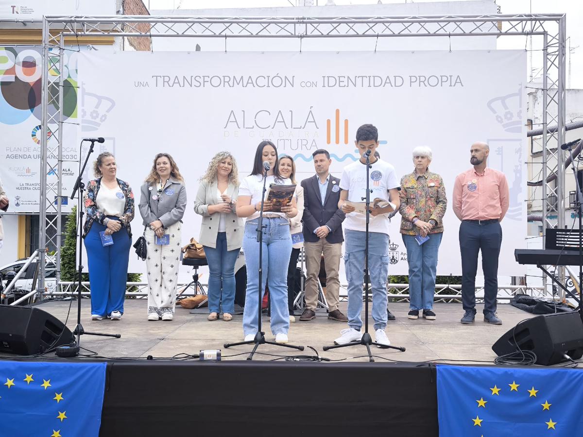 La alcaldesa, Ana Isabel Jiménez ha presidido la jornada en la que se refuerza la identidad europea a nivel local y se fortalece el vínculo entre Alcalá de Guadaíra y Europa. En los últimos 10 años la ciudad ha recibido 42 millones de euros de Fondos Europeos que han sido y son claves en el desarrollo y proceso de transformación que vive Alcalá.