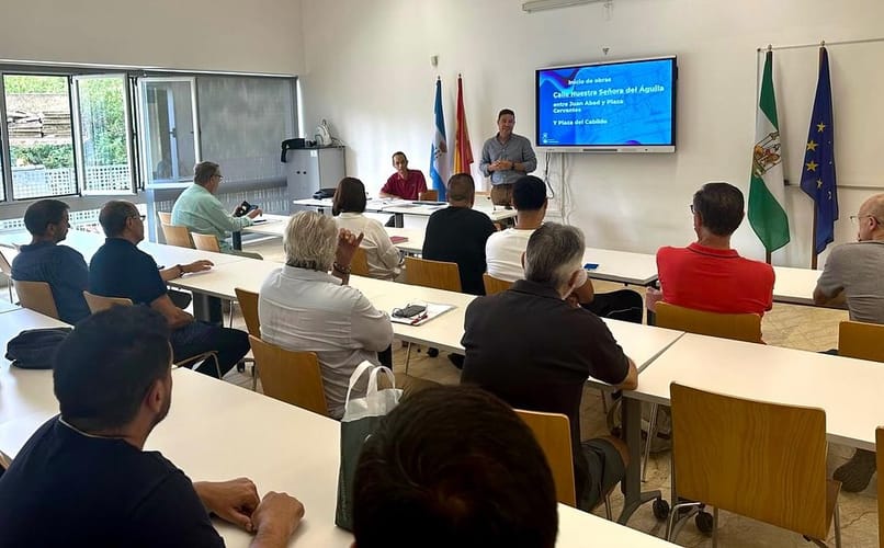 Esta mañana nos hemos reunido con los comerciantes y hosteleros de la Calle Ntra. Sra. del Águila y la Plaza del Cabildo para explicarles el proyecto de remodelación urbana, plan tráfico y el comienzo de las obras este mes de Agosto.